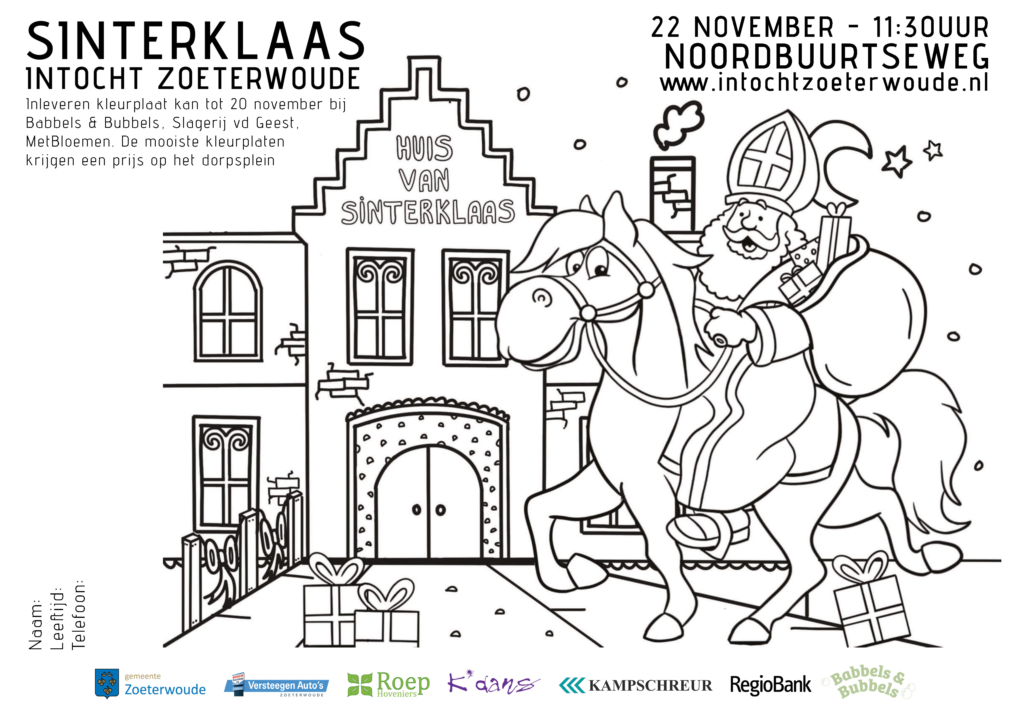Verras Sinterklaas met een mooie tekening voor hem of zijn Pieten. Je kunt jouw tekening inleveren tot 20 november bij Slagerij van der Geest, Met Bloemen en Babbels & Bubbels. Heb je geen printer of is de inkt op? Haal dan je tekening op bij een van deze ondernemers.
